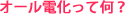 オール電化というのは、家の熱源を全て《電気》でまかなうことを言います。具体的に言いますと・・・ |